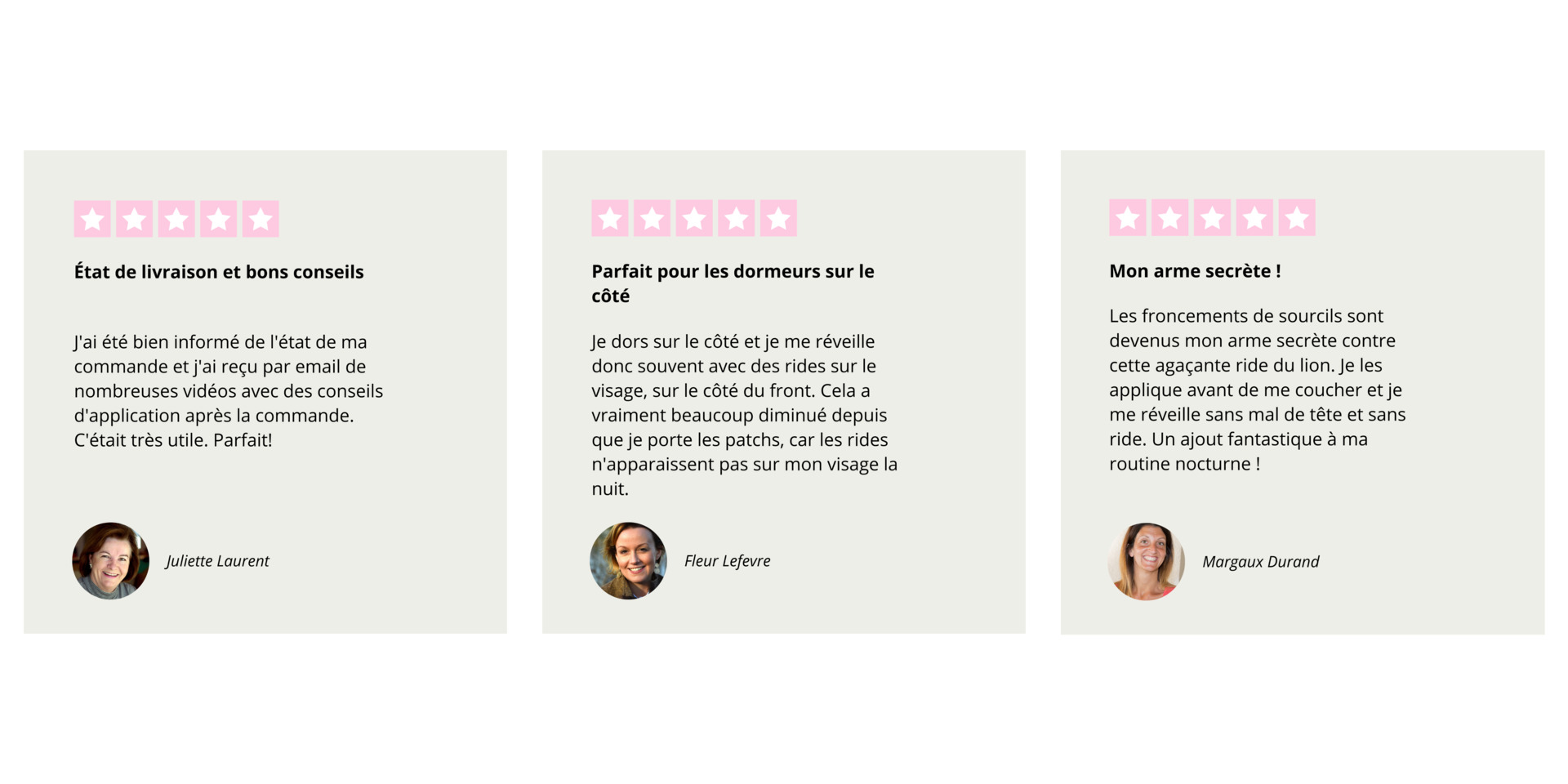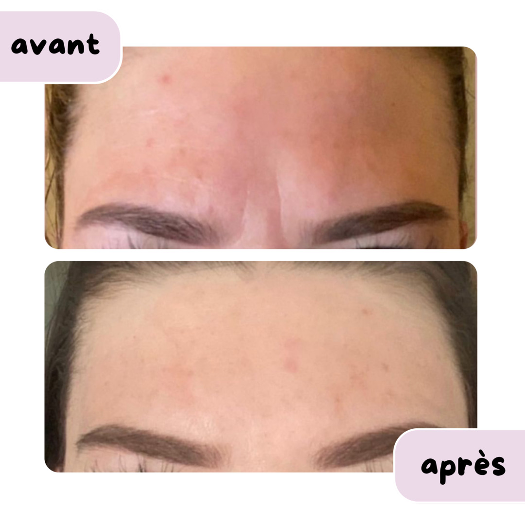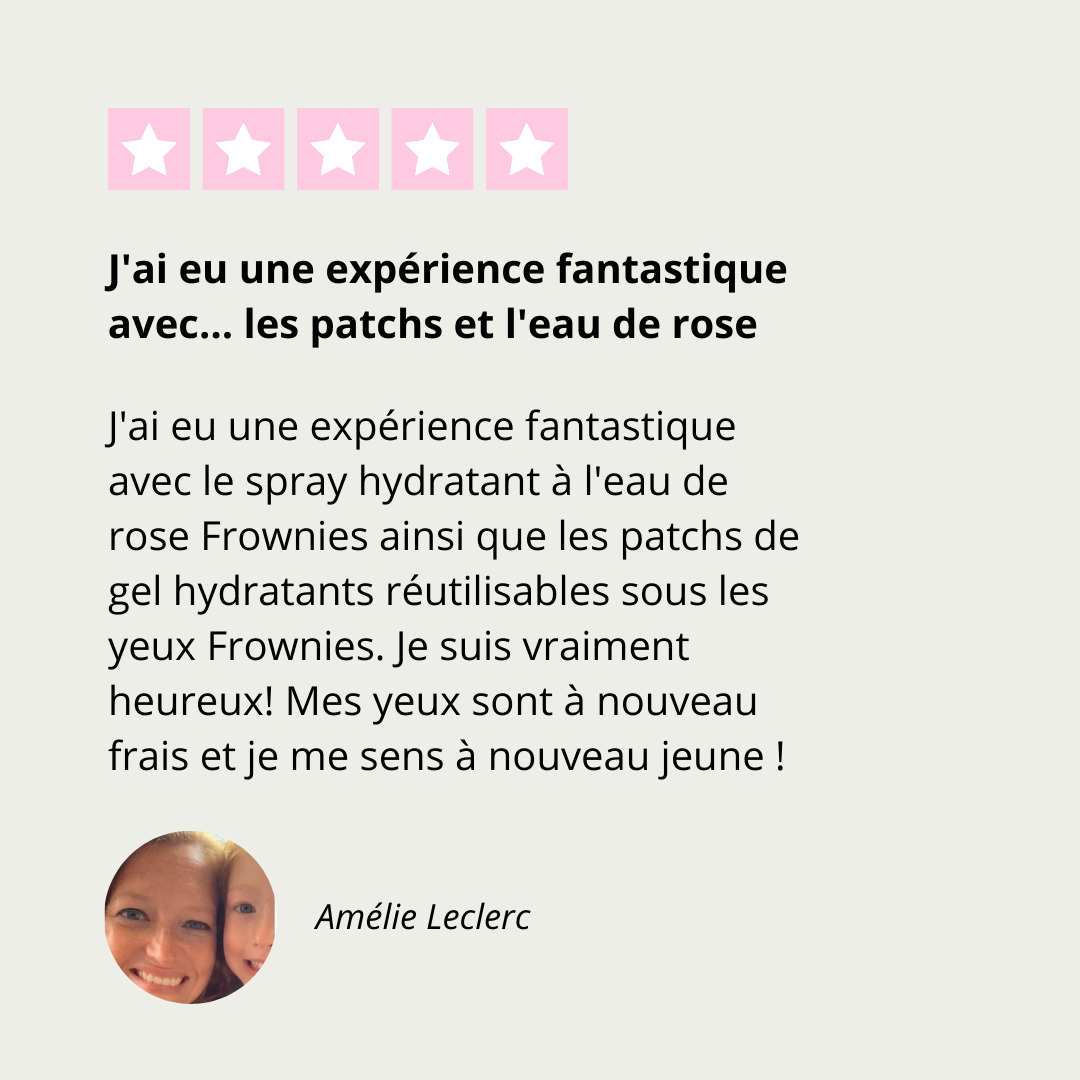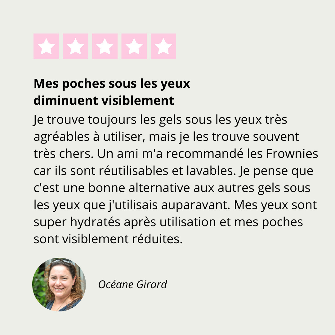 Les rides se forment en raison de la contraction de vos muscles. En portant les patchs faciaux Frownies pendant votre sommeil, vous pouvez uniquement détendre les muscles sous les patchs. Les patchs agissent comme un plâtre pour une jambe cassée. En les humidifiant avant utilisation, ils deviennent durs et permettent uniquement la détente des muscles. Le résultat : une peau avec moins de rides et de fines lignes.
